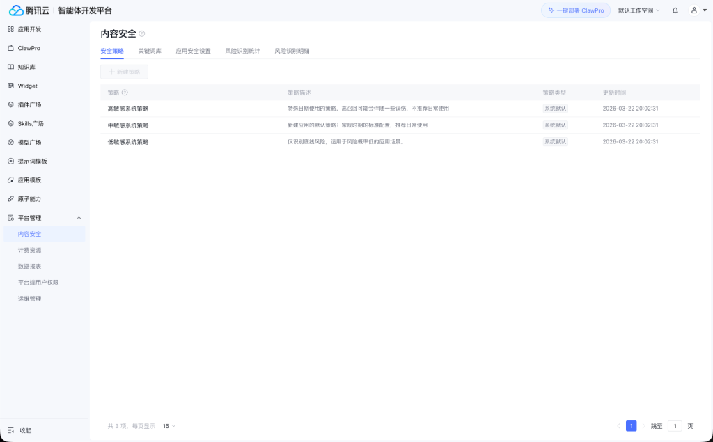 腾讯云推出的 OpenClaw 企业版,在云端内置安全模块。官方描述为:“平台内置的多用户网络隔离、服务端口隐身及“能看见、可审计、强管控、全扫描”四层AI安全纵深防护体系”。